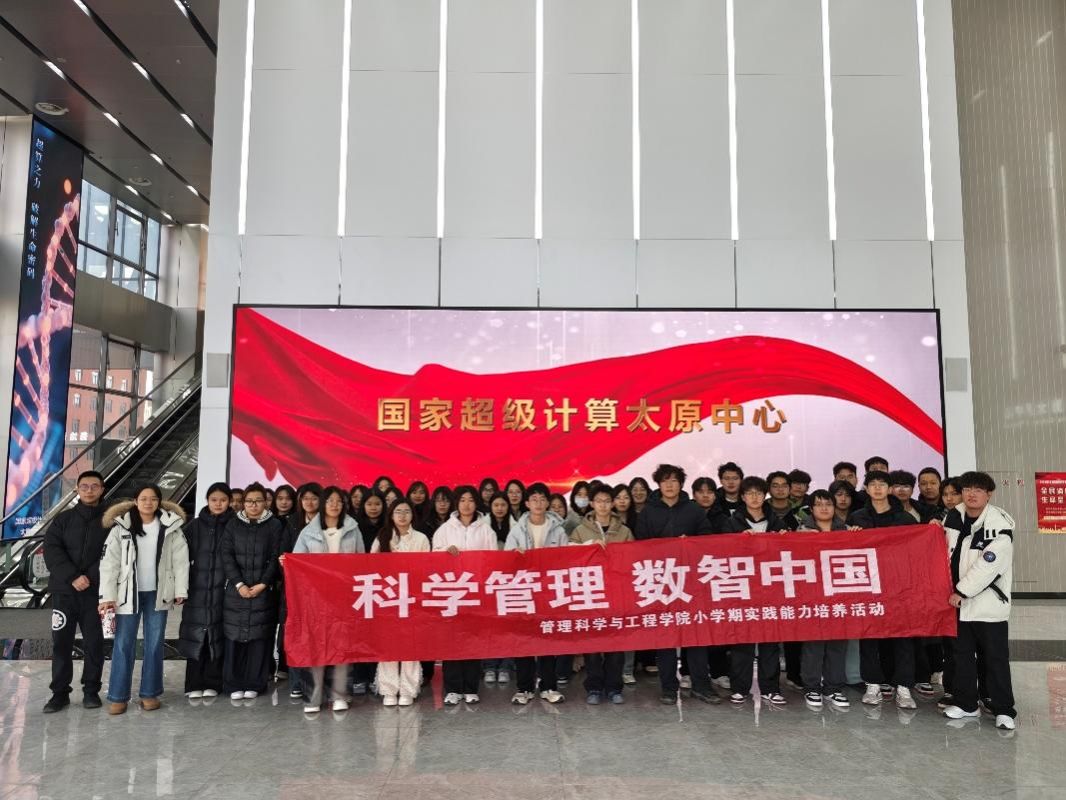 次日,学院组织全体2025级学生赴国家超算太原中心开展实地认知实践。通过近距离接触“太行”系列超级计算机,同学们直观感受到先进计算技术对复杂系统建模、海量数据分析与智能决策优化等管理科学核心研究范式的革命性推动,深刻认识到学科在算力时代下的新定位与新使命,极大地激发了学习热情与专业憧憬。