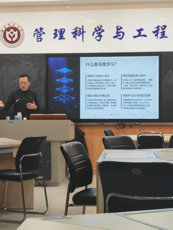 学院于2026年1月12日至13日,为2025级新生精心组织了校内讲座与校外参观相结合的专业认知实践。1月13日,在求真楼举办的“AI赋能管理科学专业发展”专题讲座,系统阐释了人工智能与管理科学交叉融合的前沿趋势,帮助新生初步建立“数据驱动+智能赋能”的学科认知框架。