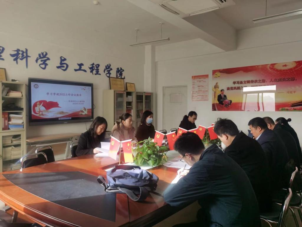 学院院长全面传达学校2022年工作会议精神,重点强调丁耀武书记、田祥宇校长在工作会上作出的工作报告,深入解读报告中对学院发展提出的目标与要求;回顾总结学院2021年主要工作完成情况及工作亮点,并从“抓落实、促管理、稳增长、保质量、建平台、拓渠道、迎评估、提层次”八个方面对学院2022年重点工作任务进行了部署。学院院长强调,2022年,学院要按照学校工作总体部署要求,踔厉奋发、笃行不怠,以创建全国党建工作标杆院系为契机,稳扎稳打,努力开创学院事业腾飞新局面,持续推进学院工作上台阶上水平,服务学校高质量发展战略布局。