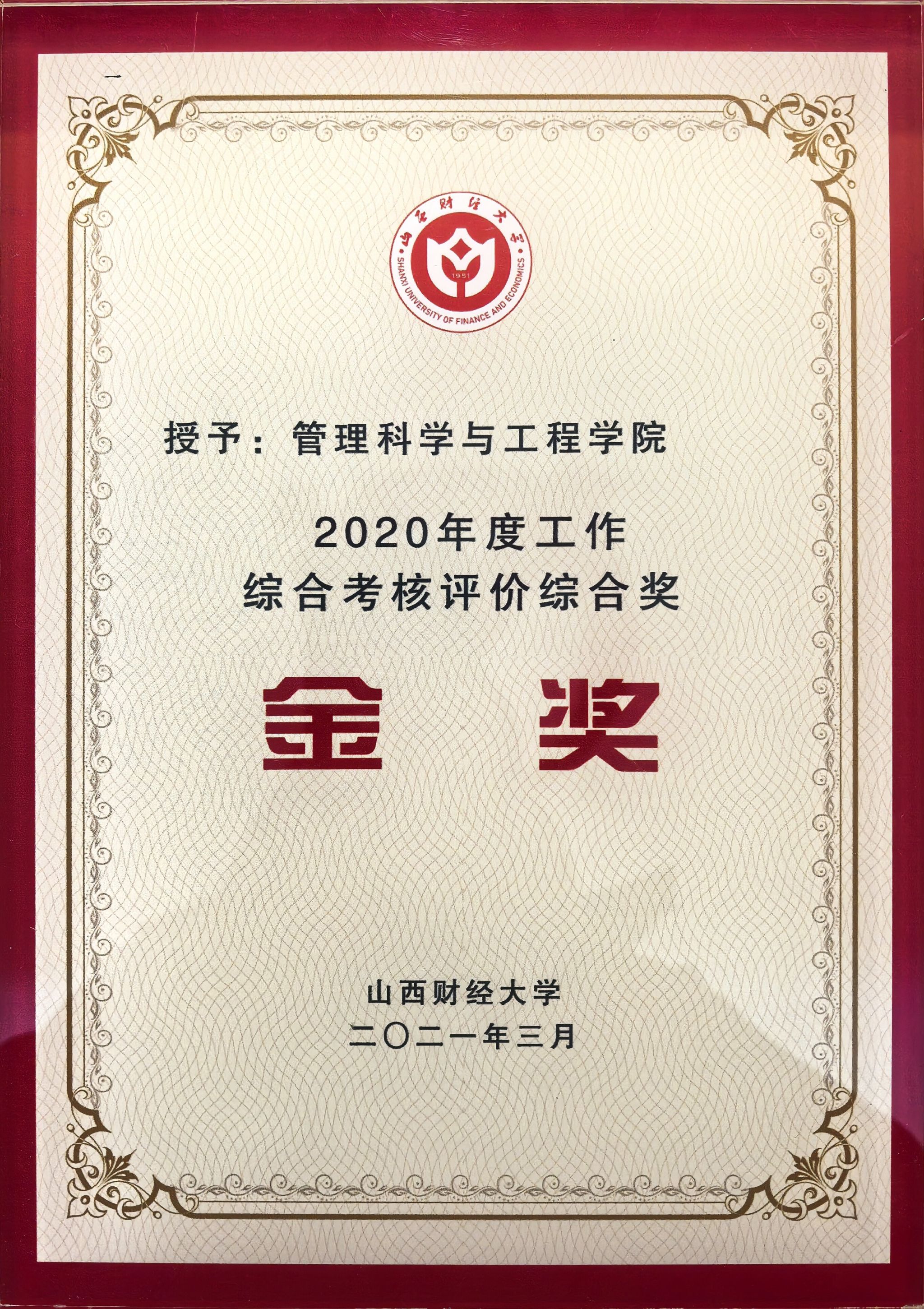 2020年我院获必威西汉姆联工作综合考核评价优秀单位金奖。
