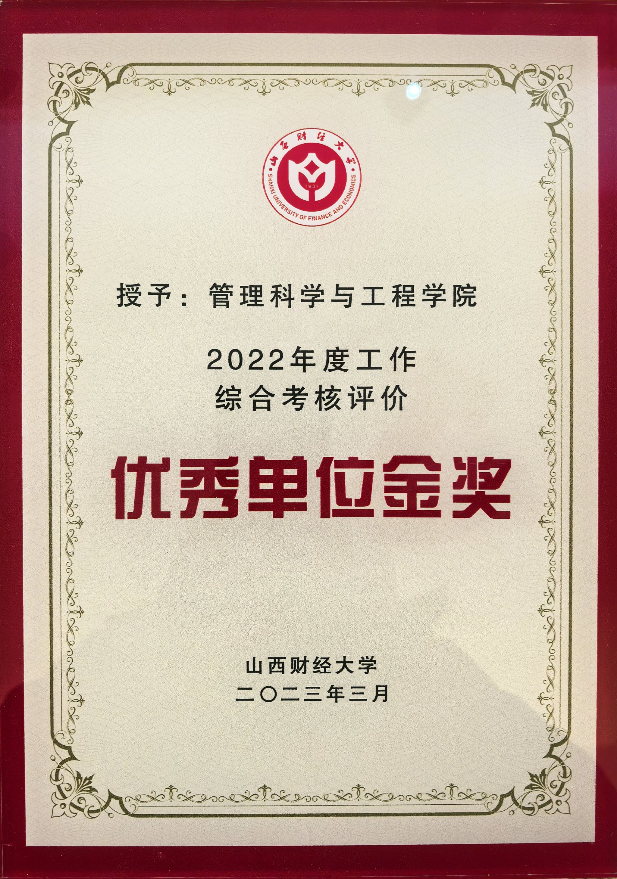 2022年我院获必威西汉姆联工作综合考核评价优秀单位金奖。