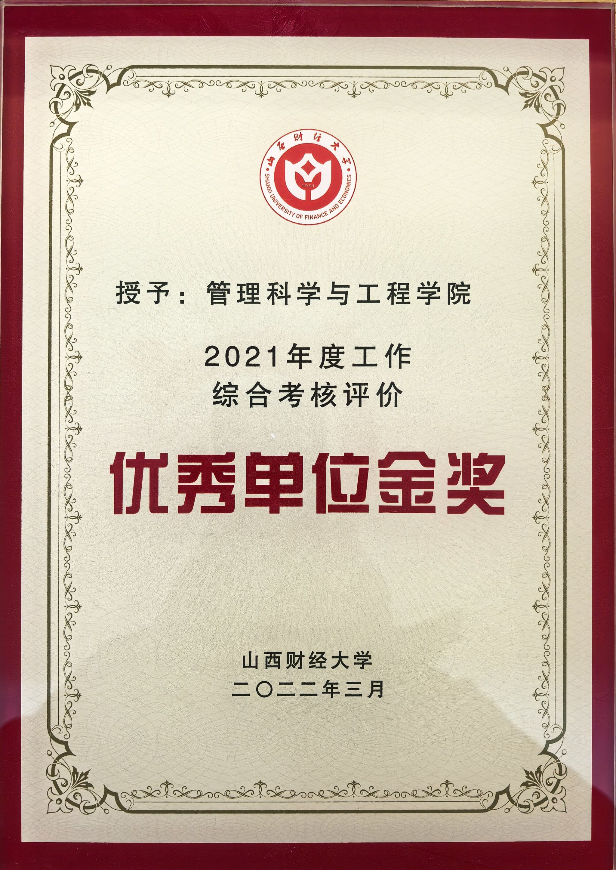 2021年我院获必威西汉姆联工作综合考核评价优秀单位金奖。