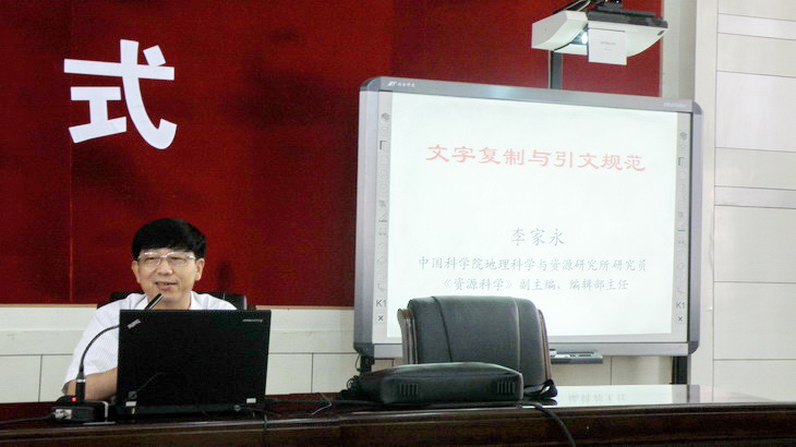 6月23日上午,应必威西汉姆联、研究生学院、学科办、科技处邀请,中国科学院地理科学与资源研究所研究员、《资源科学》常务副主编、编辑部主任李家永在我校育才楼一层会议室作了题为“文字复制与引文规范”的报告,赵国浩副校长主持了报告会,全校教师和研究生共160人参加。