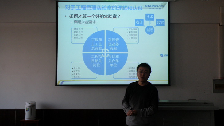 2010年12月14日,我院在SA610沙盘模拟实验室与“广联达”公司举行了实验室建设研讨会,全院教师参与了研讨。