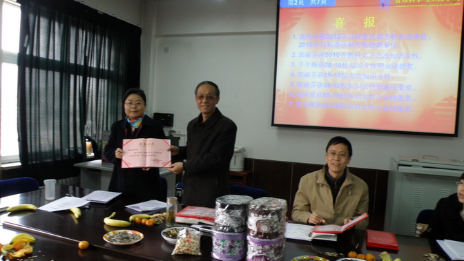 2011年3月8日,我院全体教师共聚一堂欢度“三八”国际妇女节,院领导为部分获奖老师颁发了奖状和奖品。