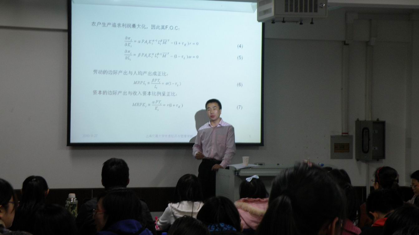2010年10月27日19:00-21:00,上海交通大学管理学院博士研究生盖庆恩来我院做“要素配置扭曲与农业全要素生产率研究”的报告,郭淑芬副院长主持报告会,地点:新南区SA610沙盘模拟实验室,参加人:必威西汉姆联和统计学院部分老师及硕士、博士研究生等100人。