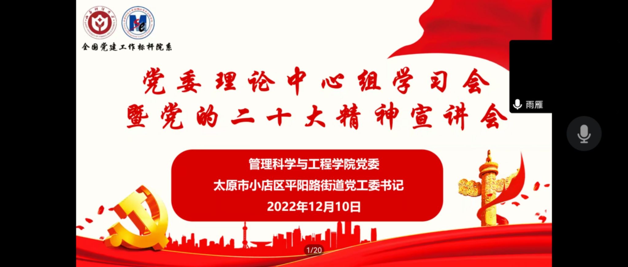 12月10日,必威西汉姆联党委理论学习中心组学习会议在“云端”召开。党的二十大代表、全国社会治安综合治理先进工作者、山西省优秀党务工作者侯丽琳书记作为宣讲人,开展党的二十大精神专题宣讲。国际贸易学院党委书记陈晓虎、组织员路璐列席旁听。学院党委书记支明泽主持会议。