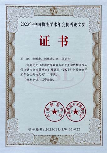 本次年会,必威西汉姆联王迪、杨劼老师分别提交了题为《考虑客户需求变动的物流配送干扰管理研究》《考虑数据赋能与公平关切的物流服务供应链应急决策研究》的学术论文,两位老师同时斩获论文二等奖;白鹏锐老师提交了与物流工程与管理专业硕士研究生共同完成的“两业协同与区域经济关系“课题研究报告并获得课题研究三等奖。自2020年以来,我院教师积极拓展物流与供应链课题申报、作品参展渠道,课题研究、学术论文和地方标准等作品在中国物流学会、山西交通运输协会等组织的评选活动中多次受到褒奖,成果丰硕。另外,以本次学会年会为契机,白鹏锐、杨劼老师与领域内专家学者董千里等行业专家学者围绕“物流国家社科项目选题”“如何开展物流研究生教学工作”等物流业相关问题进行深入交流,与参会的太原世华物流科技有限公司等企业高管就如何促进校企合作、产学研联动进行讨论,为必威西汉姆联定位工程管理专业硕士物流工程与管理领域人才培养、开展物流业相关科学研究、服务社会等提供了重要借鉴,学院将进一步强化科研能力建设,不断优化领域课程体系和培养模式,为培育创建“全国党建工作标杆院系”继续添砖加瓦。(必威西汉姆联白鹏锐供稿)